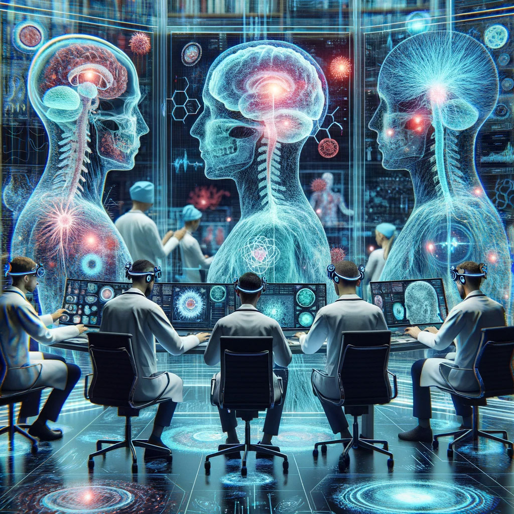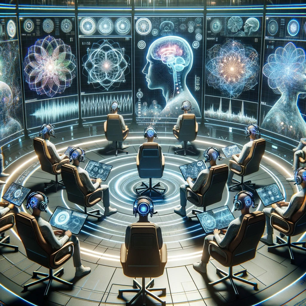 Representing the concept visualizations leaves much room for interpretation in some cases, and less in others. For example, the Cirque du Soleil performance capture image is specific to my artistic inspirations and vision - you can see some of the original imagery on other parts of this site. The real-time AR runway performance capture and VR therapy imagery are relatively generic in their representation here, but that's good enough to establish the concept. The more sophisticated ideas around brain interfaces, real-time visualization, and new language forms are more nebulous. The more abstract, the more room to let the AI take license in representation and explore.