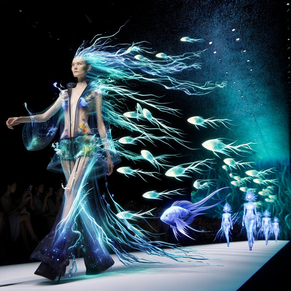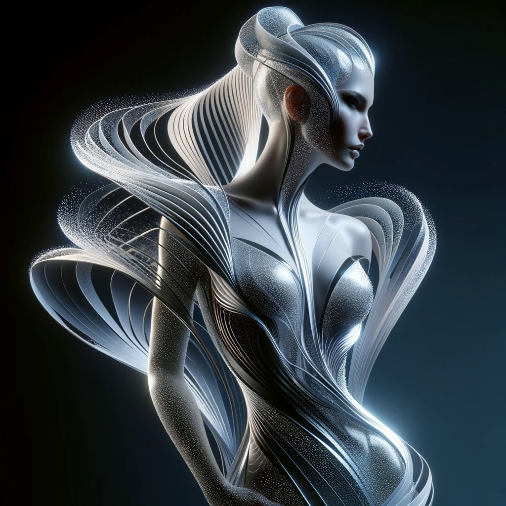 Representing the concept visualizations leaves much room for interpretation in some cases, and less in others. For example, the Cirque du Soleil performance capture image is specific to my artistic inspirations and vision - you can see some of the original imagery on other parts of this site. The real-time AR runway performance capture and VR therapy imagery are relatively generic in their representation here, but that's good enough to establish the concept. The more sophisticated ideas around brain interfaces, real-time visualization, and new language forms are more nebulous. The more abstract, the more room to let the AI take license in representation and explore.